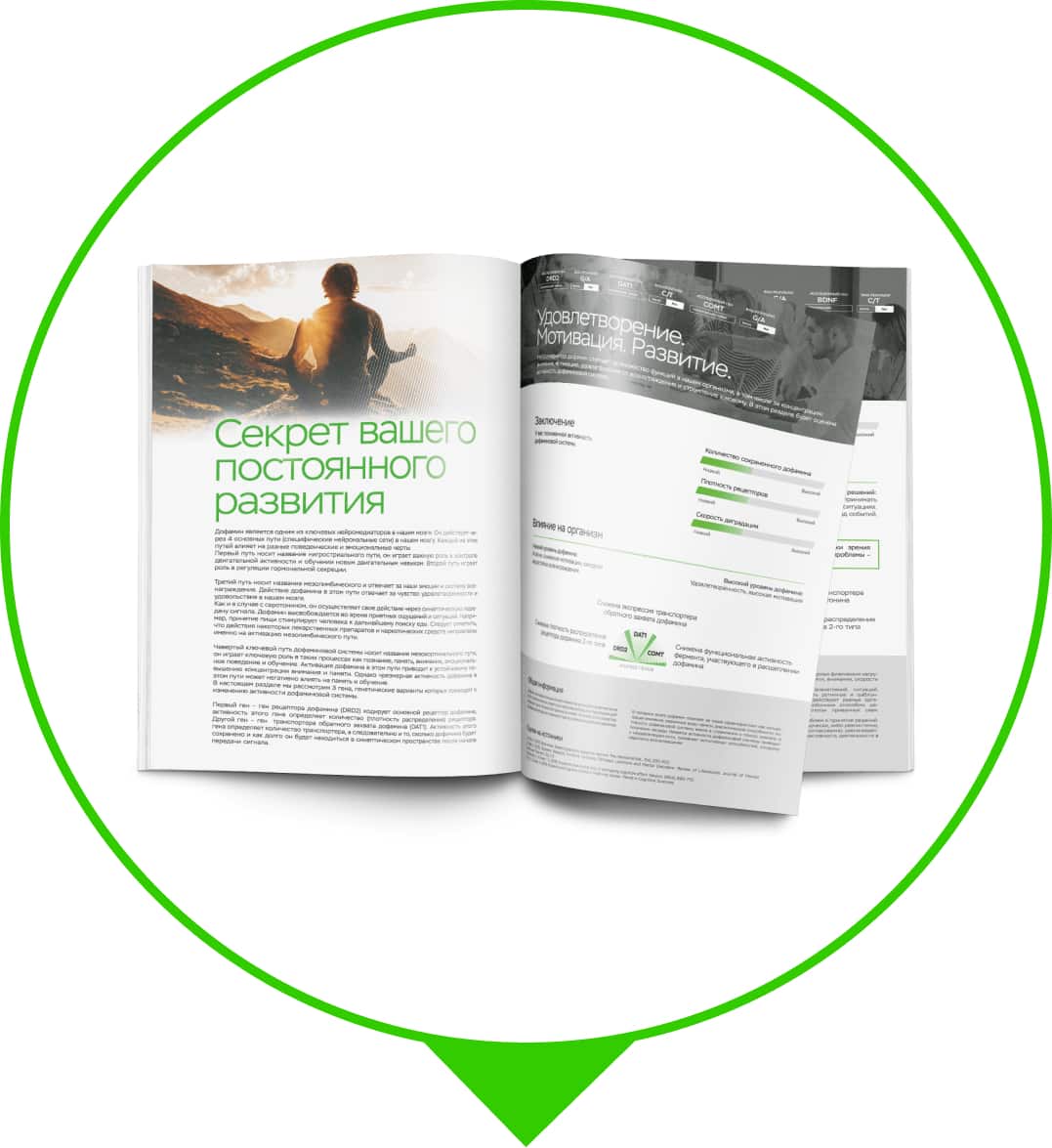 Есть ряд генов, которые «программируют» дофаминовую систему, которая важна в стремлении к поиску новизны и получении награды. Именно успешным людям свойственны такие черты, ведь они любопытны и не боятся рисковать. А нехватка активности дофаминовой системы, напротив, приводит к неудовлетворенности, снижению когнитивных способностей, синдрому недостатка вознаграждения. Если же работа этой системы будет скорректирована по результатам ДНК-теста – ваш успех неизбежен, потому что вы никогда не опустите руки на пути к нему.